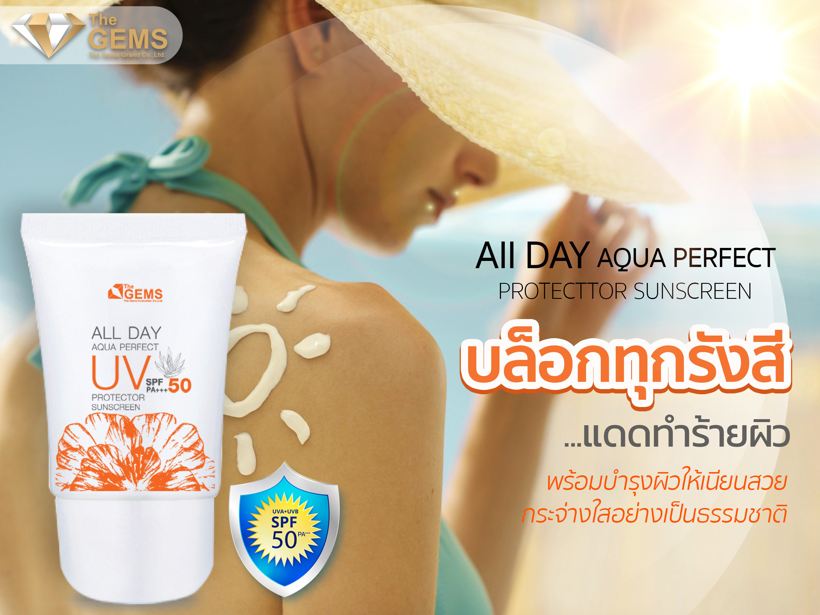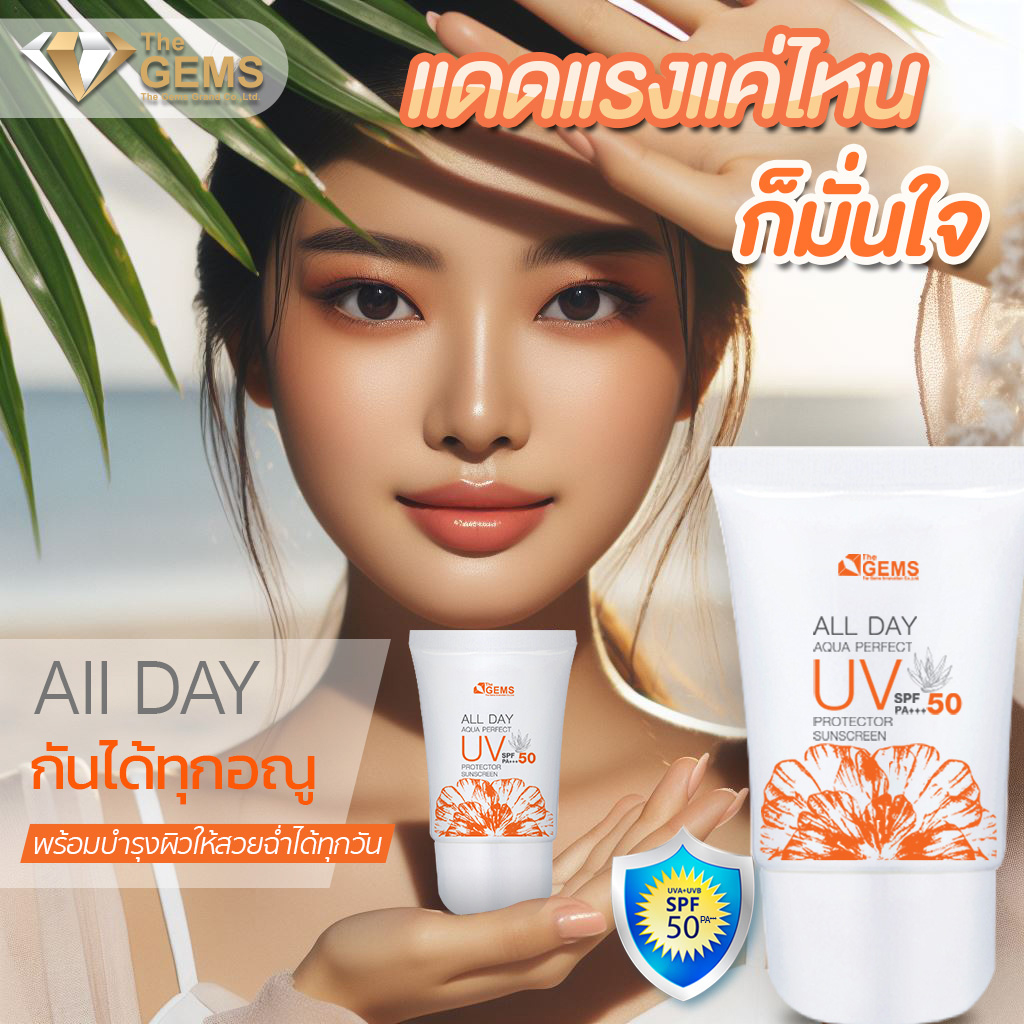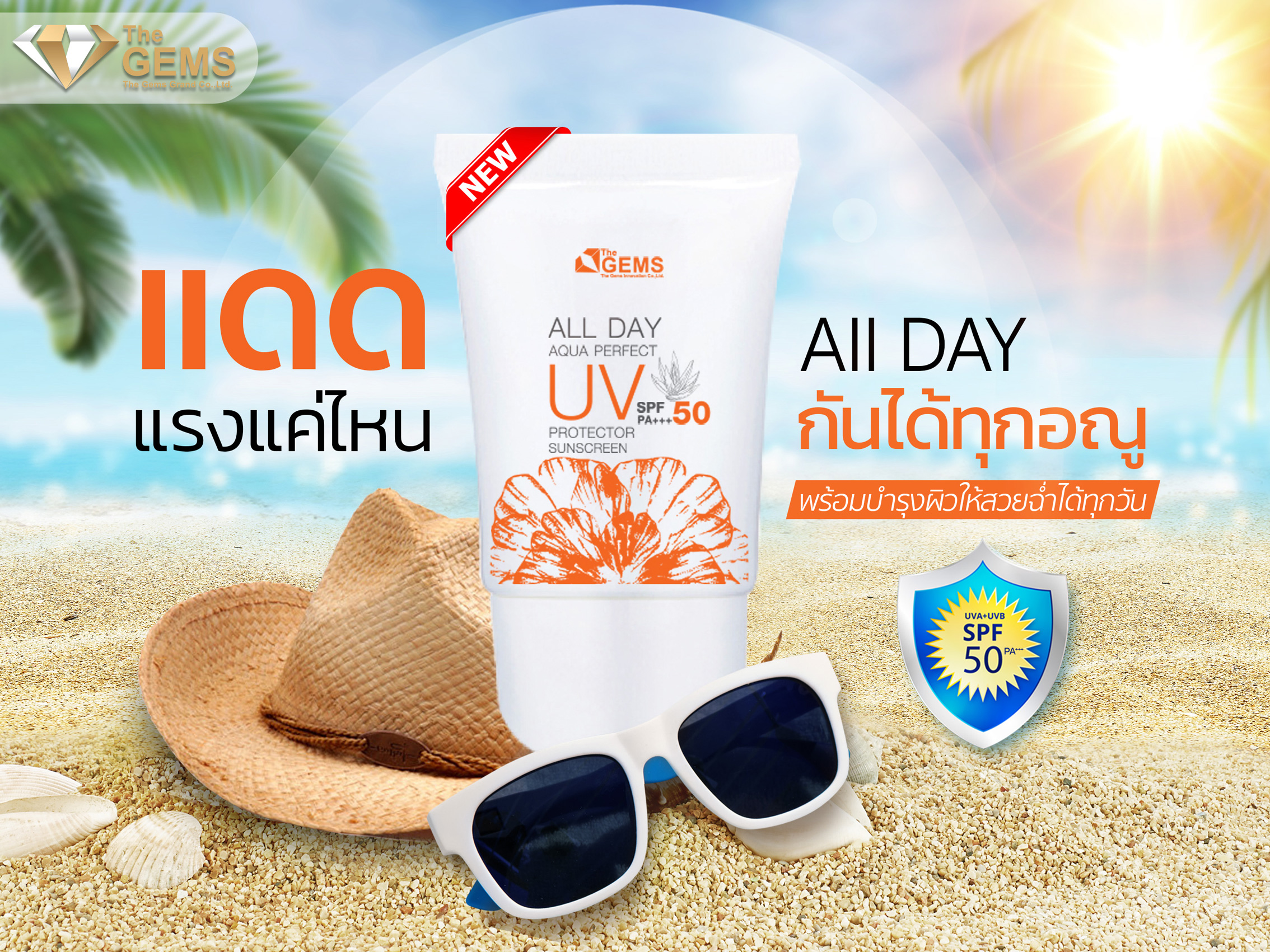 All Day ผลิตภัณฑ์กันแดดเนื้อน้ำนม ช่วยปกป้องผิวจากรังสี UV ที่มาจากแสงแดด ทั้งรังสี UVA และB ให้เนื้อสัมผัสที่บางเบา ไม่เหนียวเหนอะหนะ แถมเกลี่ยง่าย ซึมไวกลืนไปกับผิว และระหว่างวัน ไม่มันเยิ้ม เมื่อต้องเผชิญหน้ากับแสงแดด มลภาวะ ฝุ่นควัน และแสงสีฟ้าจากจอคอมพิวเตอร์ มือถือต่างๆ ที่พร้อมจะทำร้ายผิวหน้าของเราตลอดเวลา
